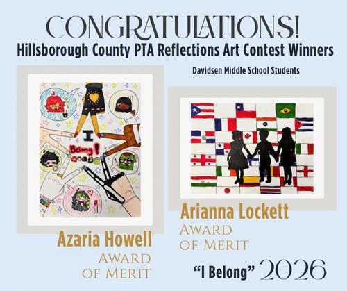 We are pleased to announce the Davidsen Reflections students whose entries received Awards of Merit for Hillsborough County PTA for the 2025-26 school year.
